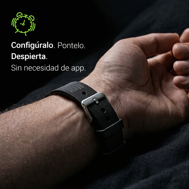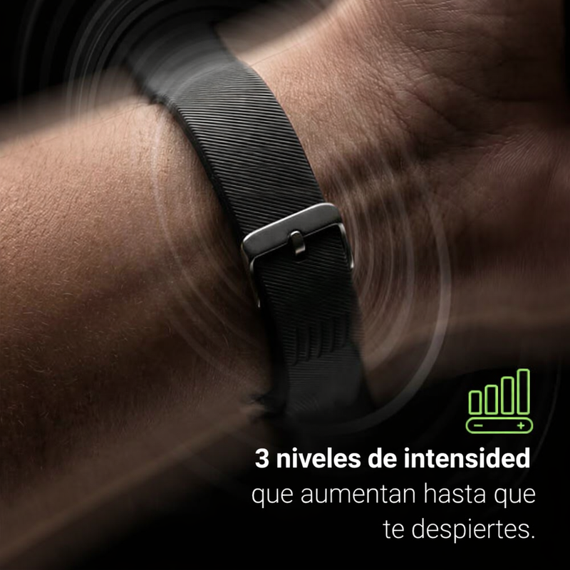 Dormí tranquilo: la pulsera vibrará suavemente para despertarte a tiempo, sin ruidos.