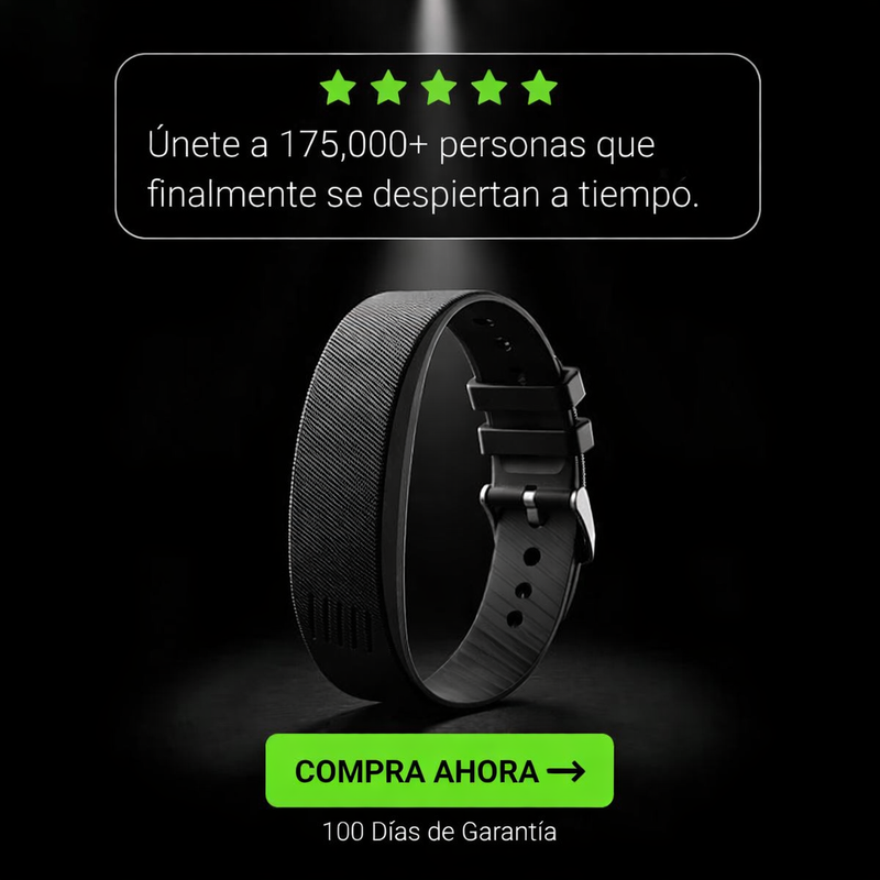 Esta pulsera despertador te despierta con una vibración suave pero efectiva, justo en el momento correcto, sin interrumpir el sueño de tu pareja. Tan liviana y cómoda que te olvidarás que la llevás puesta, con batería que dura hasta 14+ días. Dormís mejor. Despertás mejor. Todos los días.